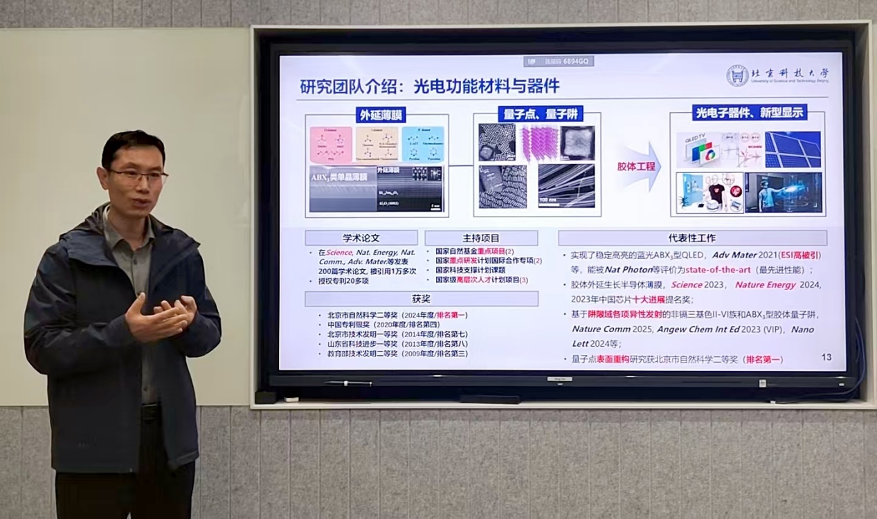 游学活动特邀bwin必赢唯一官方网站新材料技术研究院副院长田建军教授作专题分享。作为新型半导体光电材料与器件领域的顶尖专家和行业领军者,田院长系统介绍了其团队在该方向的前沿研究与代表性技术成果。通过深入浅出的讲解,校友们对显示行业的技术现状、发展趋势与创新机遇有了更加全面而深刻的理解。