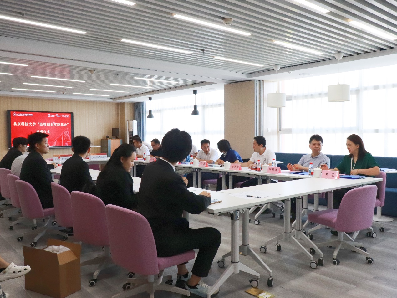 王昕校友在发言中深情回顾了在母校求学、拼搏的青春时光,感恩母校对他的培养。与学校的多年联系中,他见证了北科大代代学子的成长与精神传承,自己也从中汲取了智慧与力量。他深感荣幸和自豪,能够通过捐赠帮助更多经管学弟学妹实现梦想,捐赠只是他表达对母校深厚情感的一种方式,更重要的是,他希望通过自己的不懈努力,为母校的建设和发展贡献一份坚实的力量。